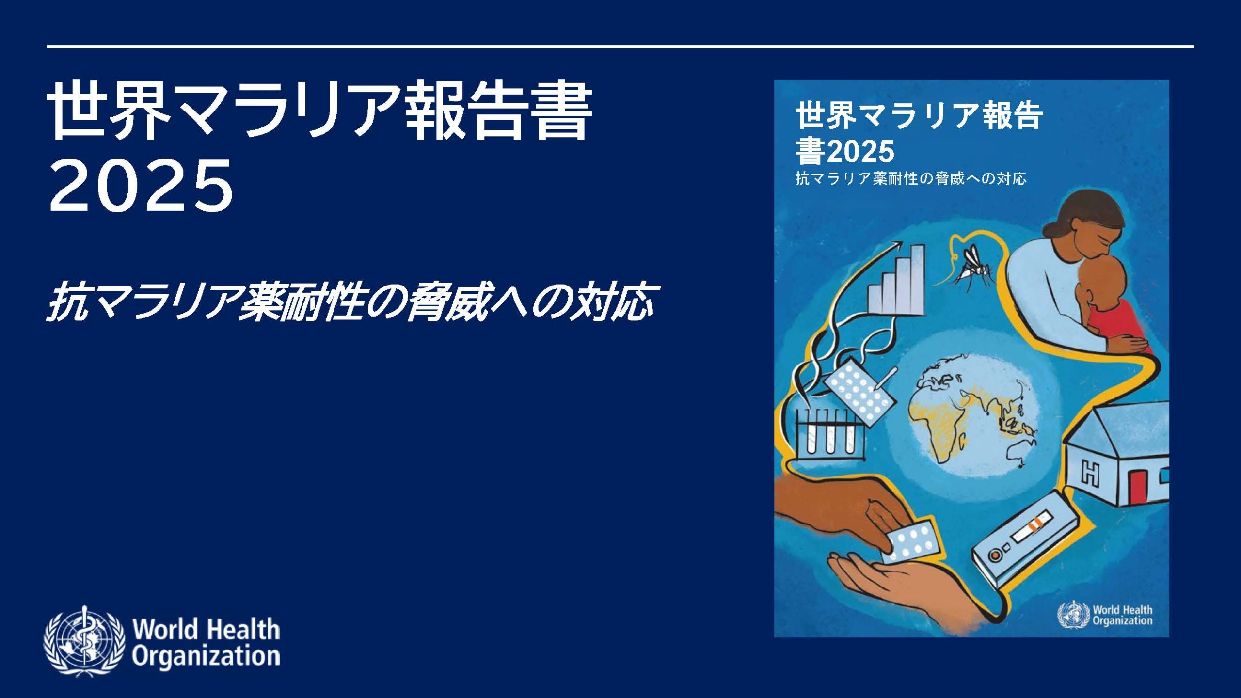 本報告書では、依然として世界的な健康課題であるマラリアの現状に加え、今年の主要テーマである抗マラリア薬耐性の拡大や、対策資金の不足、新ワクチンの導入状況などが詳しくまとめられています。